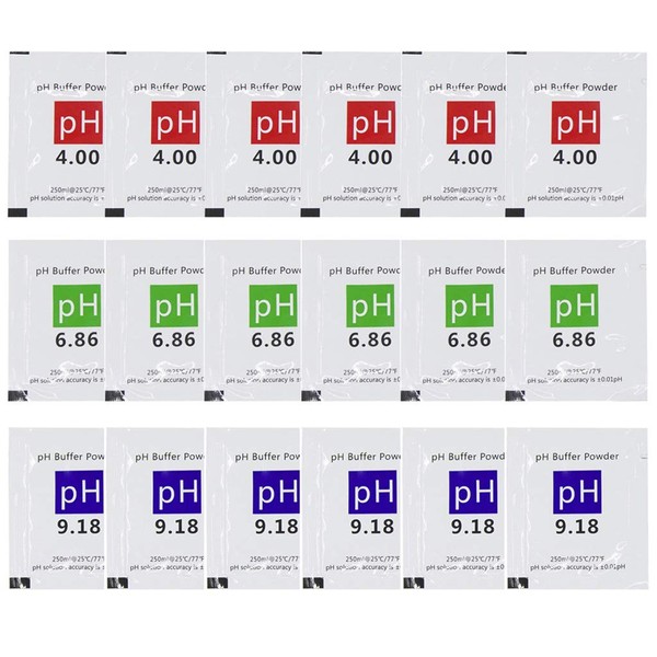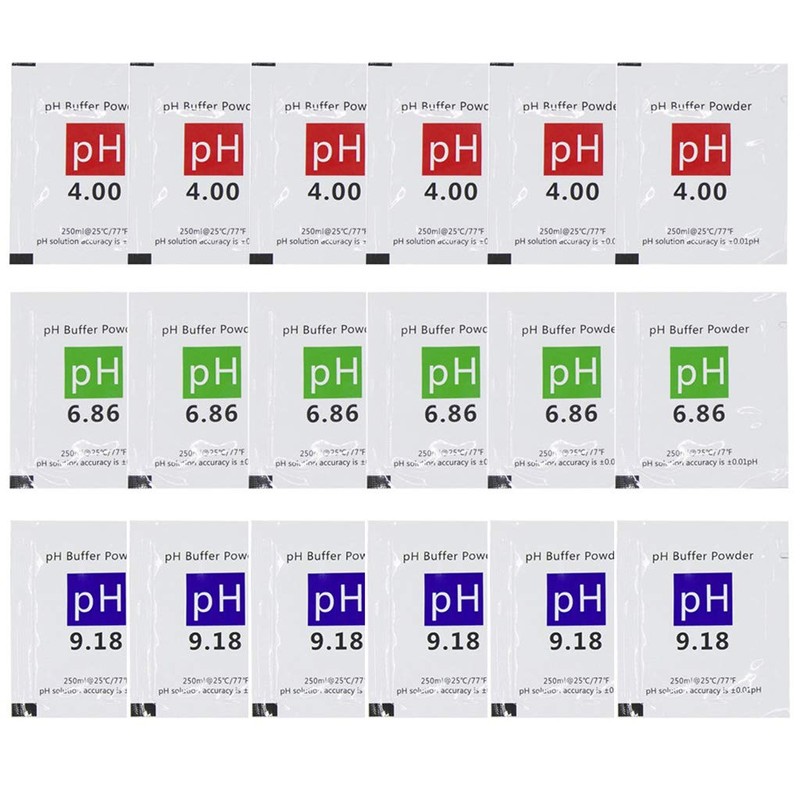 - 18 pack ph calibration packets: 6*ph 6.86 packets, 6*ph 4.00 packets, 6*ph 9.18 packets, cost-effective and flexible for using.