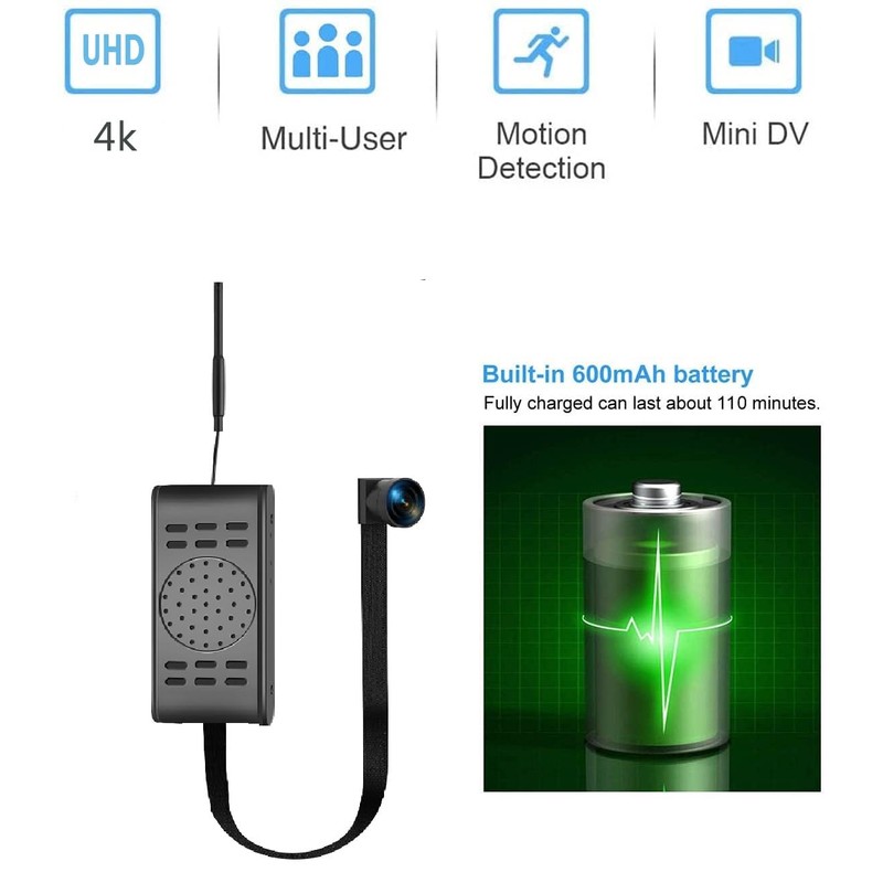 - [4k Full HD Camera]: This WiFi mini camera has 4K high-definition video, which makes the video clearer and more vivid, the picture is clear and fluent, equipped with 2 million pixels, high light lens module, the picture is noiseless, so that the camera presents a clearer monitoring picture.