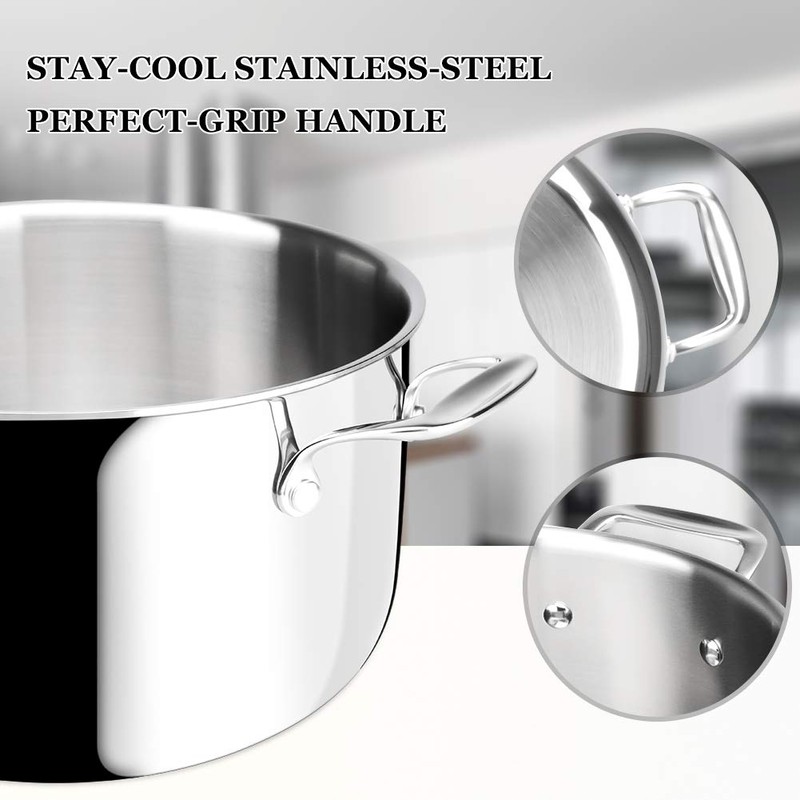 - HIGH QUALITY MATERIAL: This 6.5 quart stock pot is manufactured with whole-clad tri-ply stainless steel—ensuring even heating and eliminating hot spots.