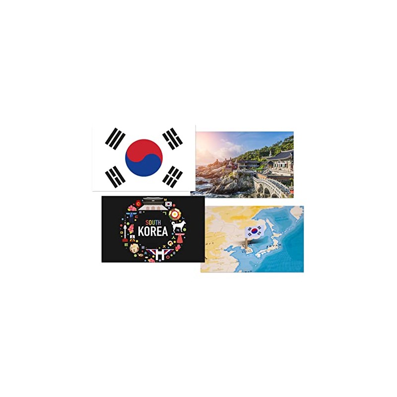 DV DESIGN Set of 4 South Korea White Ballpoint Pens - Korean Flag City Map Country Holiday Travel Friends Boys Girls Men Women Theme Pen #79550