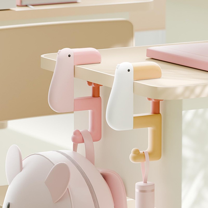 Dvagoent 2 Bag Holders for Table, Cute Duck Pattern, Handbag Holder, Plastic, Foldable, Practical Storage, Manual Swivel Attachment, Easy to Install (White, Pink)