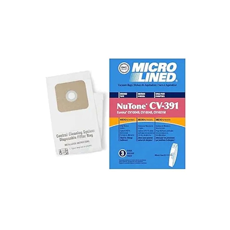 DVC Micro-Lined Paper Replacement Bags Standard For Nutone 391 Fit CV350, CV352, CV352W, CV353, CV450, CV653, CV750-3 Bags
