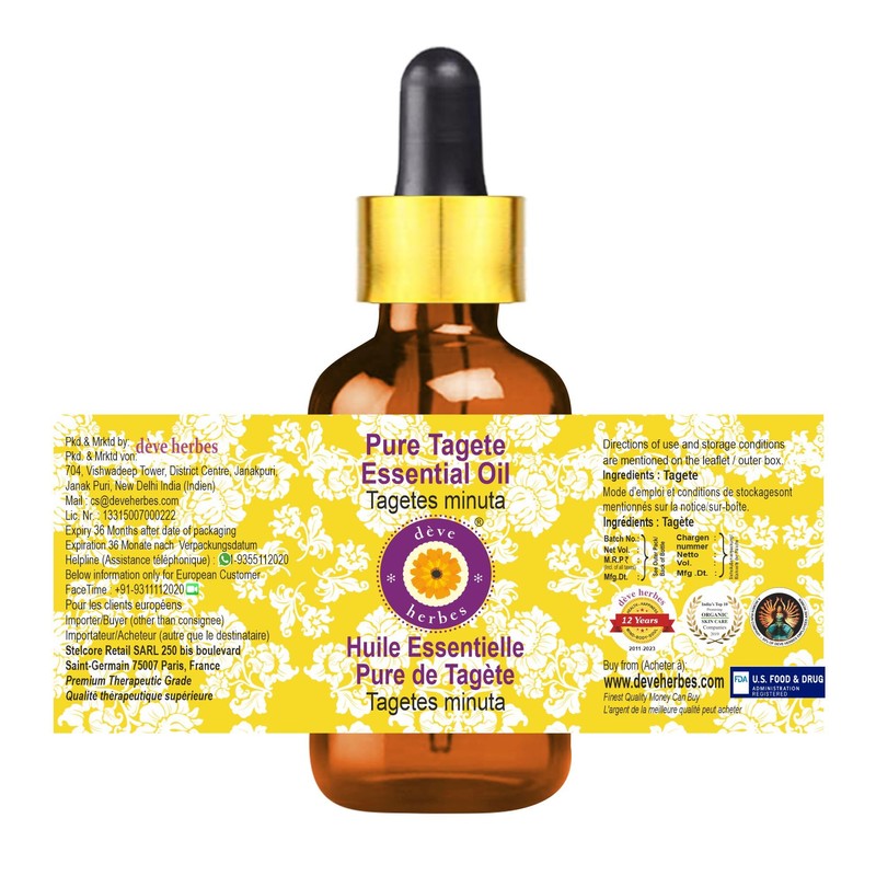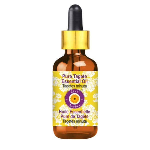 dve herbes Deve Herbes Pure Tagete Essential Oil (Tagetes minuta) with Glass Dropper Steam Distilled 50ml (1.69 oz)