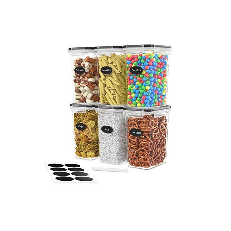 DWËLLZA KITCHEN Airtight Food Storage Container Set - 6 Pieces 2.0L - Plastic BPA Free Kitchen Pantry Storage Containers - Dishwasher Safe - Include 8 Labels and Marker - Keeps Food Fresh & Dry