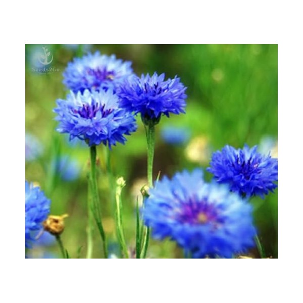 Dwarf Blue Cornflower (Bachelor's Buttons, Dwarf Blue Jubilee Gem) Seeds - Centaurea cyanus, Pack of 1000 Seeds by Seeds2Go