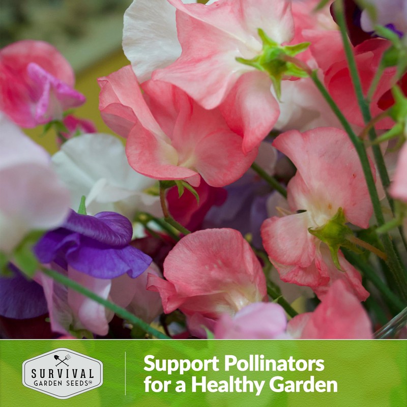 - Sustainable Living - Although Dwarf Mixed Sweet Pea is not edible for humans, it is very attractive and friendly to bee, butterfly, and other pollinator populations. It also adds beauty and fragrance the flower garden. By saving your sweet pea seeds, you can continue to propagate these vibrant blooms for seasons to come.