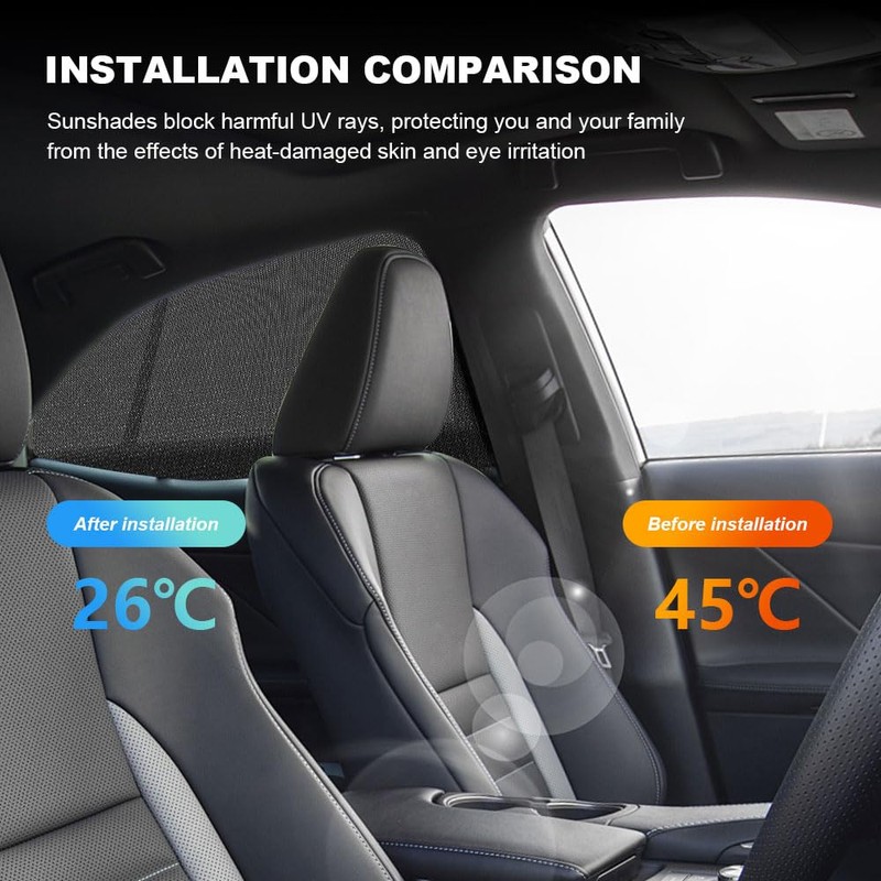 - [Sun protection and cooling] : These car window shades for baby can completely cover the window, provide better sun protection effect, isolate the heat outside the car, reduce the temperature inside the car, create a more comfortable driving environment, but also make the baby in the car, family, passengers and so on from ultraviolet intrusion, while the mesh material has good permeability, can breathe fresh air, these car shades for side windows are very practical.