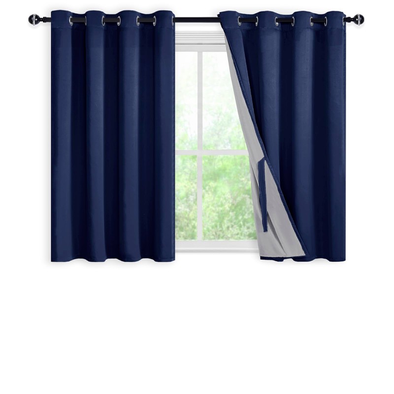 DWCN 100% Blackout Curtains 45 Inches Long with Black Liner, Thermal Insulated Privacy Protection Noise Blocking Window Drapes with Tiebacks for Small Window Navy Blue, 52 x 45 Inches, 2 Panels