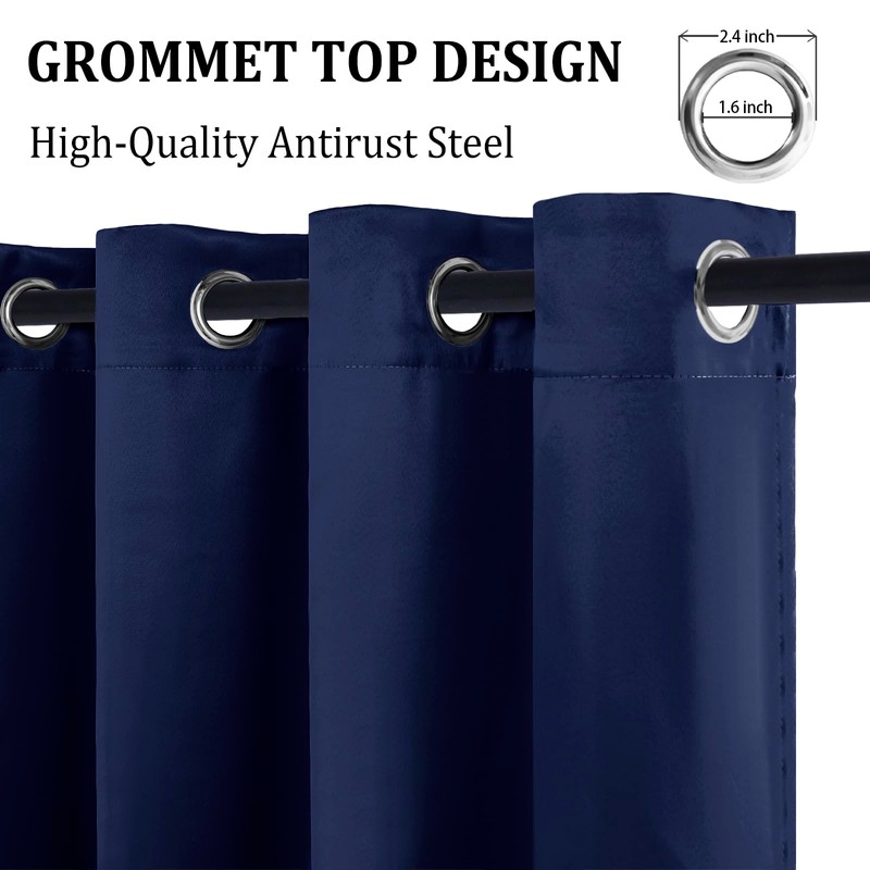- PACKAGE INCLUDES: 2 full blackout curtain panels per package, each panel measures 52" wide by 45" long (Total width is 104"). Featuring 8 rust proof silver grommets on the top for easy installation and sliding (diameter is 1.6 inch).