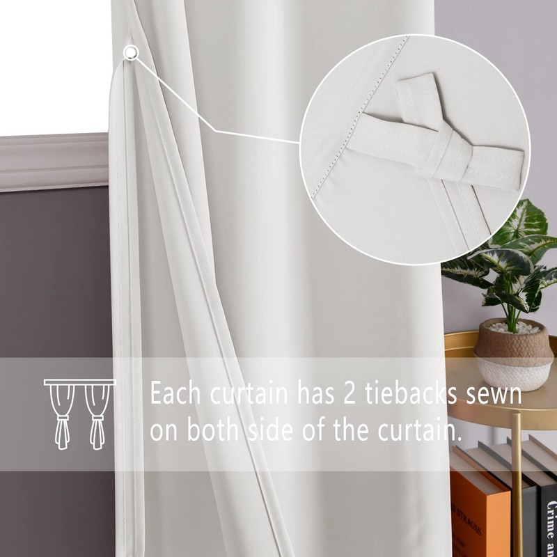 - Each panel has 2 tiebacks sewn on both side of the curtain. Convenient to tie curtains at any time.