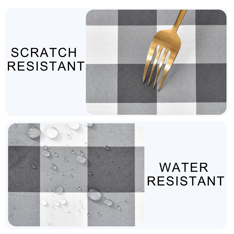 - PROTECT YOUR TABLE: Waterproof and stain-resistant tablecloth protect your table from external stains such as water, wine, and oil. Thickened and upgraded, more durable, not afraid of your table being scratched by knives and forks.