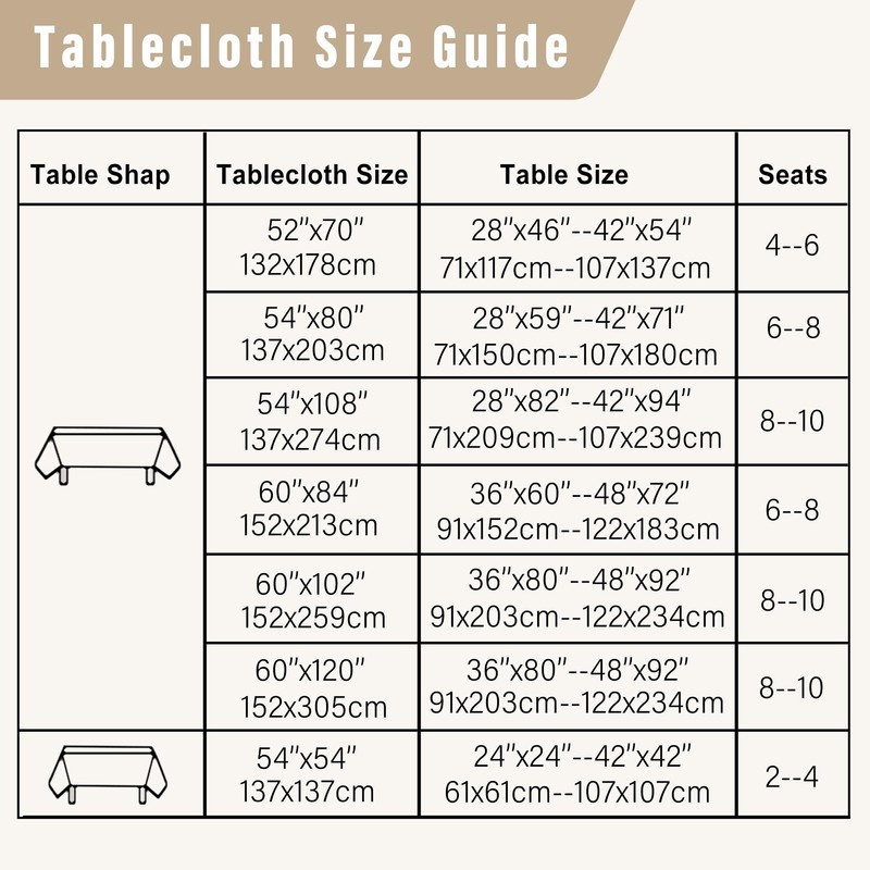 - Perfect Size: Each package includes 1 piece of tablecloth measuring 52 inches wide by 70 inches long, suitable for various tables for create a cozy dining atmosphere. Please measure your table size and according to the size guiding chart before purchasing.