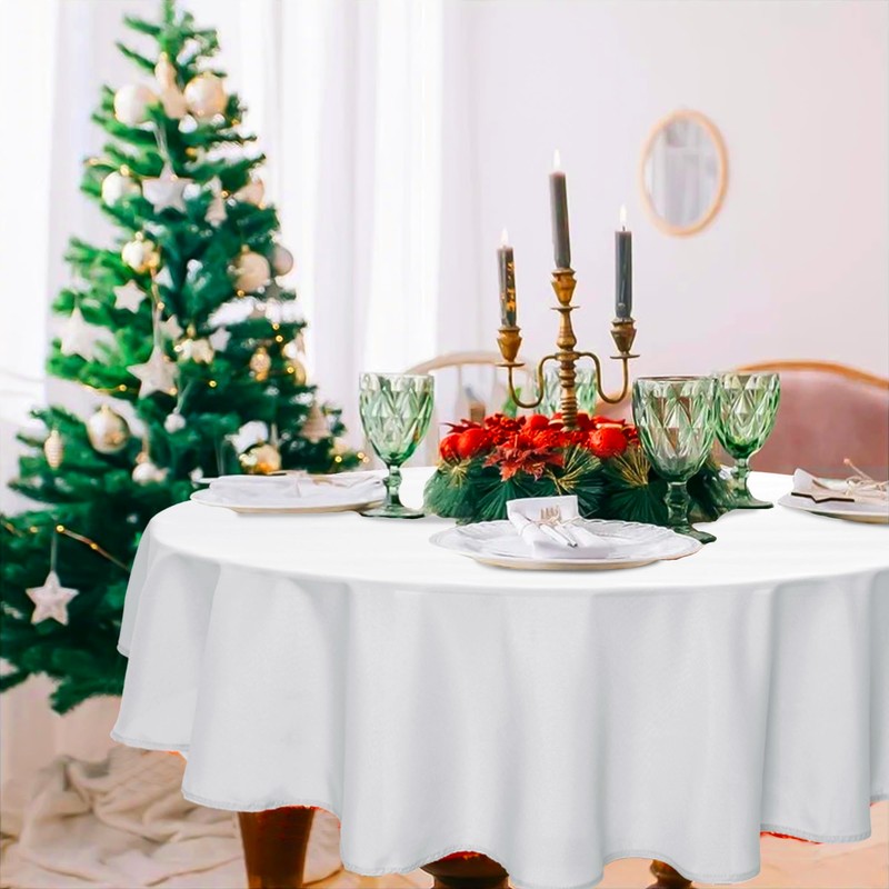 - Size:The diameter of this round tablecloth is 150cm,and it drapes nicely.you can get it in white to match the neutral decor of your dining room and to use it as the family dining tablecloth.