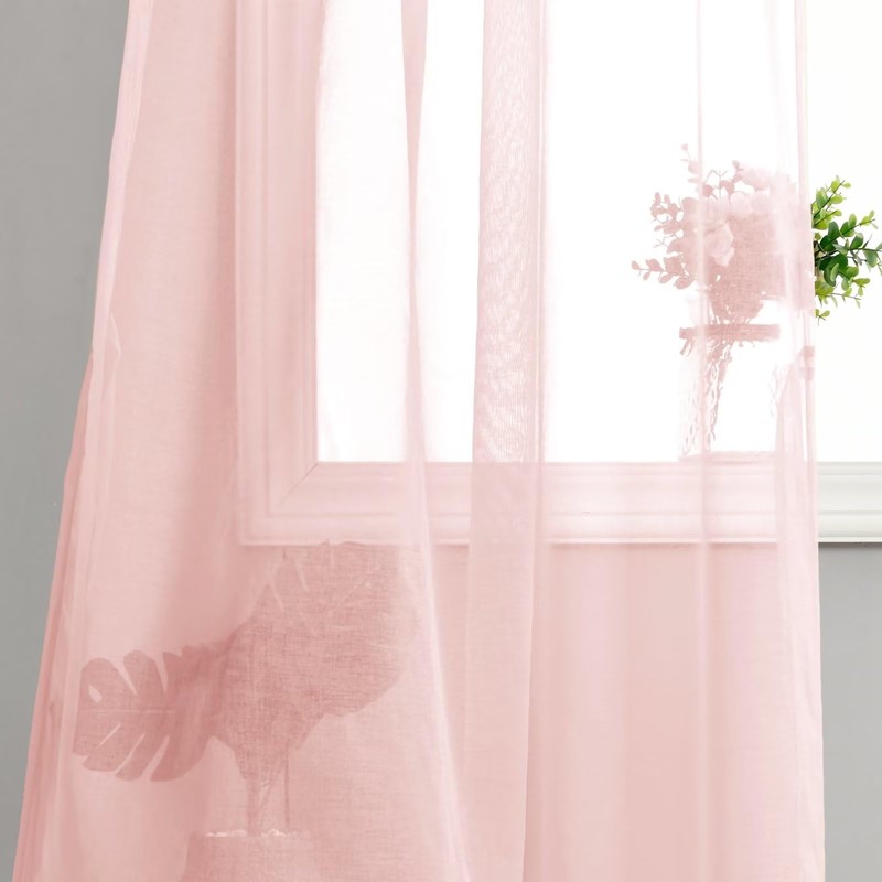 DWCN Voile Curtains with Ruffle Tape, Linen Look, 2 Pieces, Semi-Transparent Curtains for Living Room, Transparent Curtains, Blush Pink, 175 x 140 cm (Height x Width)