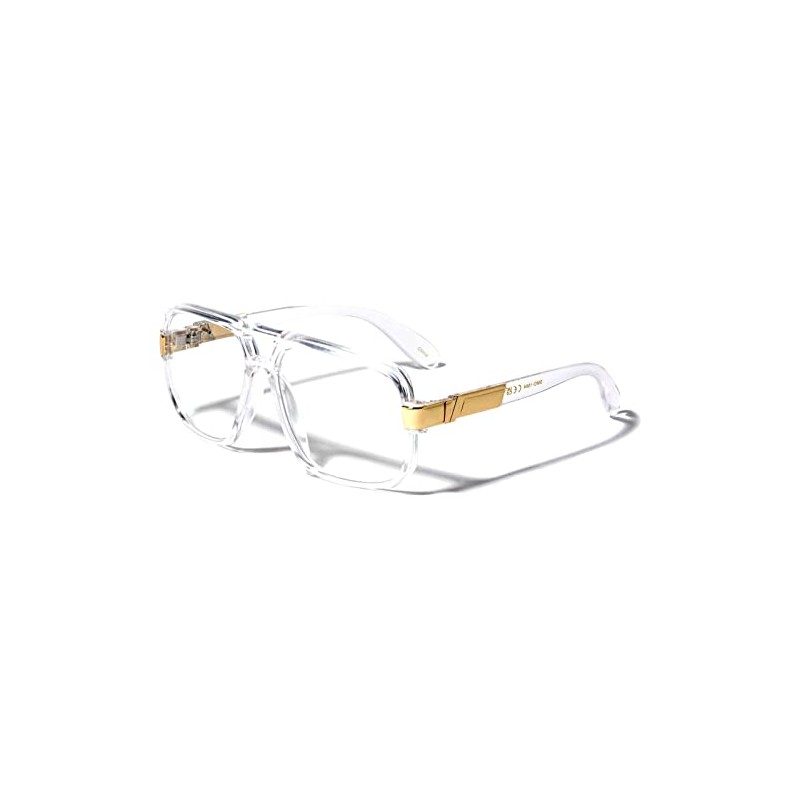 Dweebzilla Gazelle Swag Square Oversized Sunglasses w/Clear Lenses (Clear & Gold, Clear)