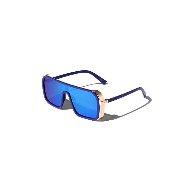 Dweebzilla Oversized Luxury Square Shield One Piece Lens Aviator Sunglasses (Blue & Rose Gold Frame, Blue Flash Mirror Lens)