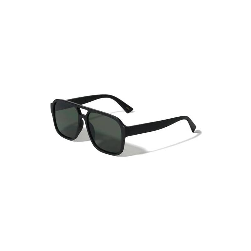 Dweebzilla Oversized Square Sport Aviator Sunglasses Classic Turbo (Matte Black Frame - Green Lenses)