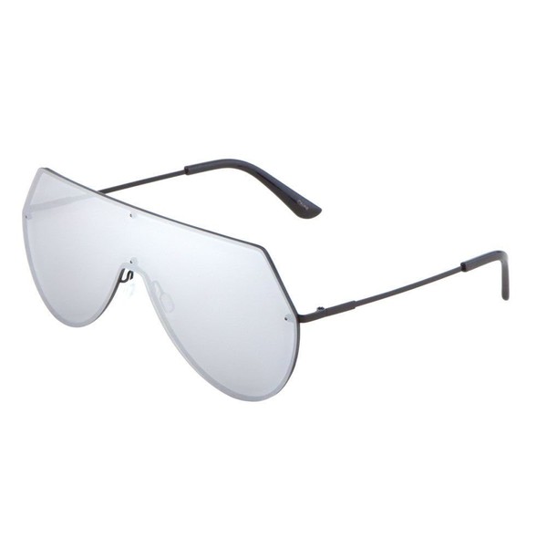 Dweebzilla Rimless Oversized Flat Top Shield Aviator Sunglasses (Black Frame, Silver Mirror)