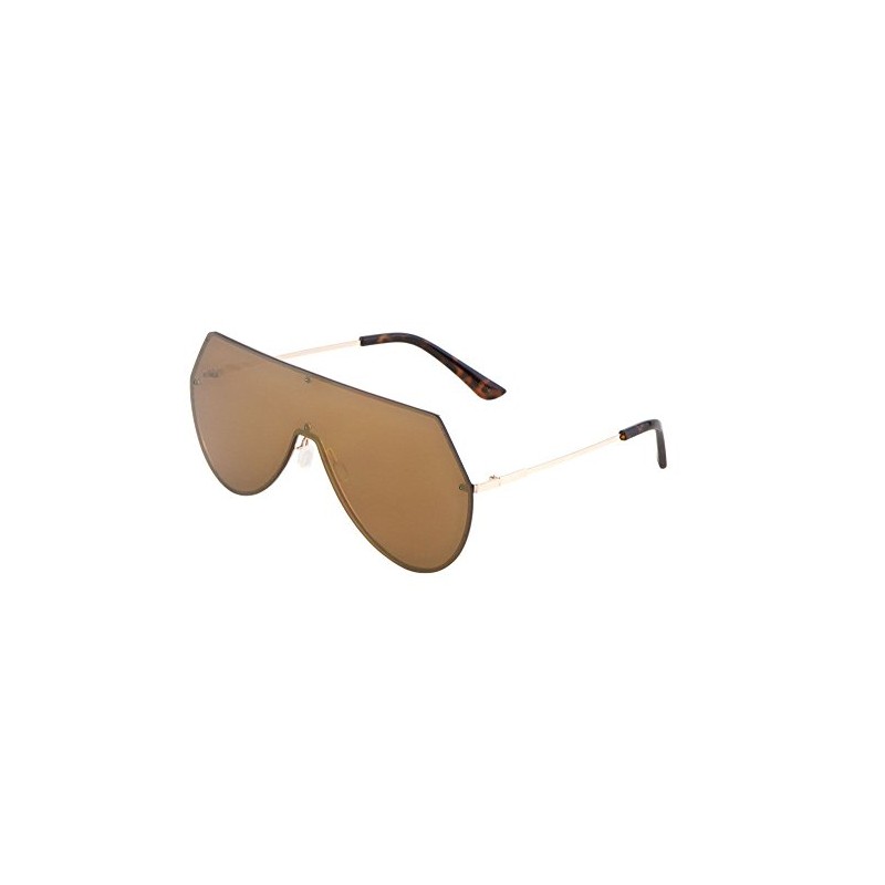 Dweebzilla Rimless Oversized Flat Top Shield Aviator Sunglasses (Gold & Tortoise Frame, Brown Amber)