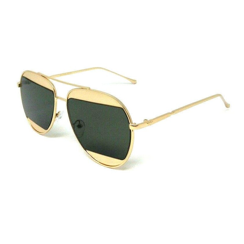 Dweebzilla Split Lenses Pilot Aviator Oversized Luxury Sunglasses (Gold Frame - Solid Green Lenses)