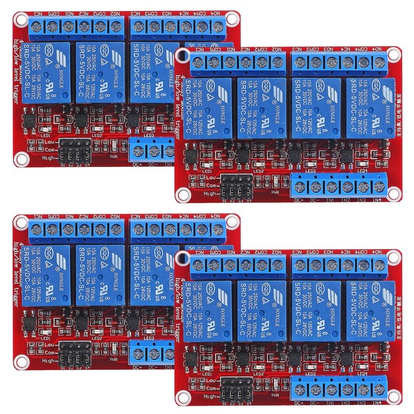 DWEII 4pack 4 Channel 5V Relay Module with Optocoupler High or Low Level Trigger Expansion red Board for Raspberry Pi Arduino