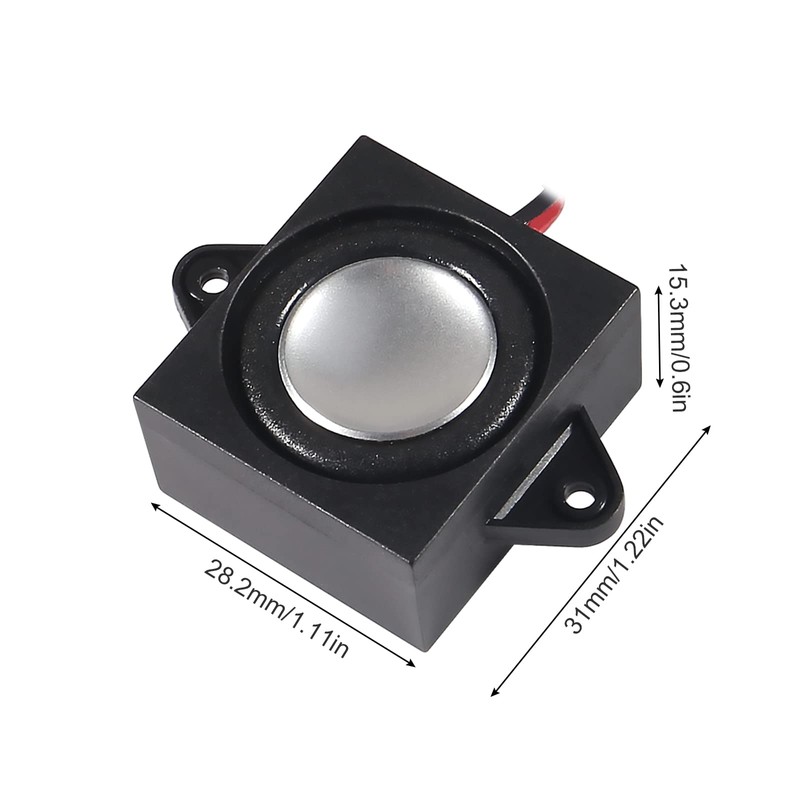 - Mini speaker: 8 ohm 3 watt;They can choose 3.3V or 5V, JST-PH2.0mm-2 pin terminal; Full frequency cavity; 31 mm long, 28 mm wide, 15 mm thick.