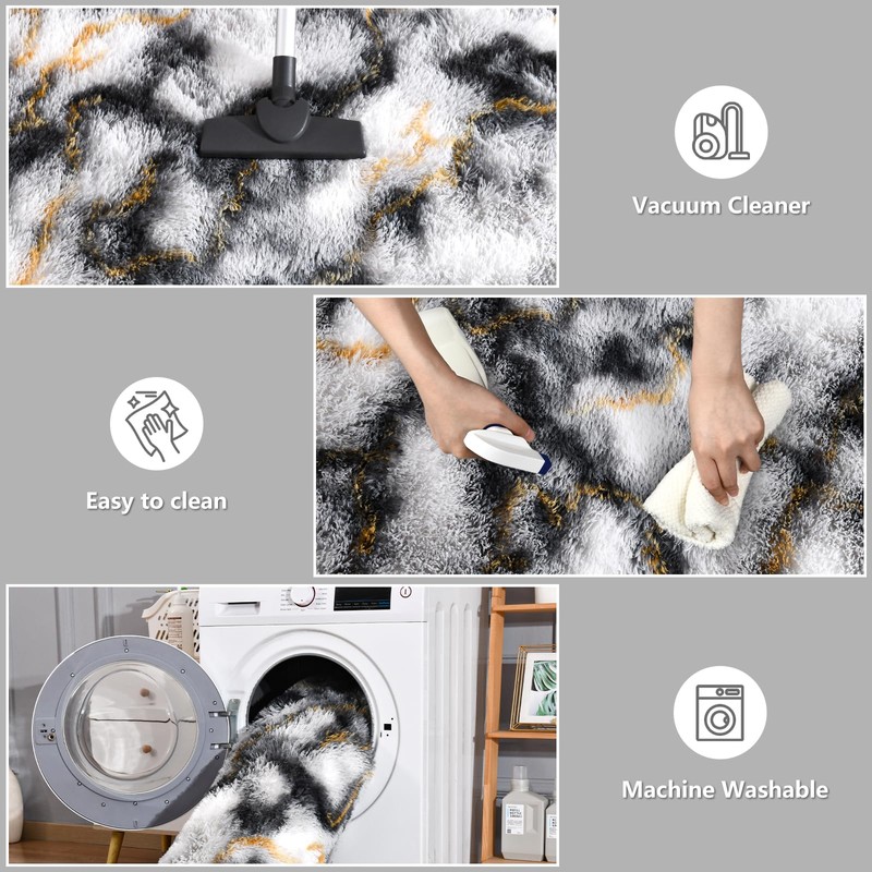 - 【Plush Fuzzy Rugs】The fluffy rug is made of three-layer material: synthetic microfiber on the top, thick sponge in the middle, and non-woven fabric on the back, which is makes bedroom rug softer and more comfortable