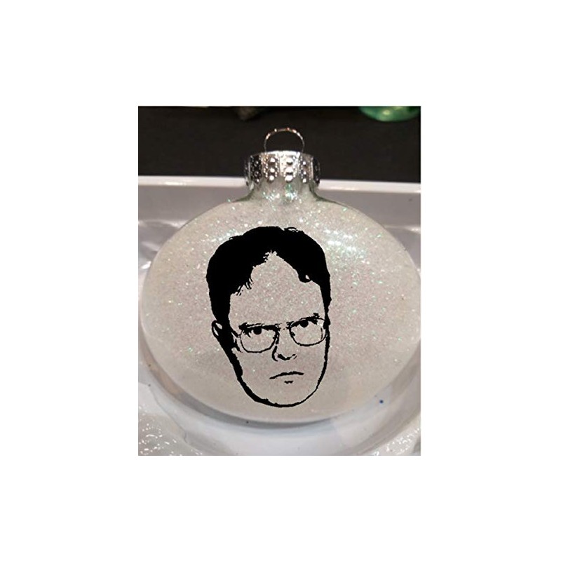 Dwight Schrute The Office White Glitter Horror Holiday Ornament Shatterproof Disc
