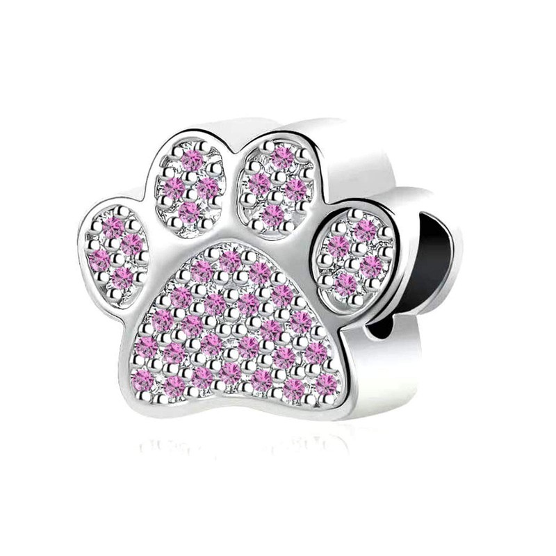 DWJSu Dog Paw Charm for Bracelets Puppy Dog Bulldog Pet February Birthstone Charm fit European Charms Bracelets Necklace