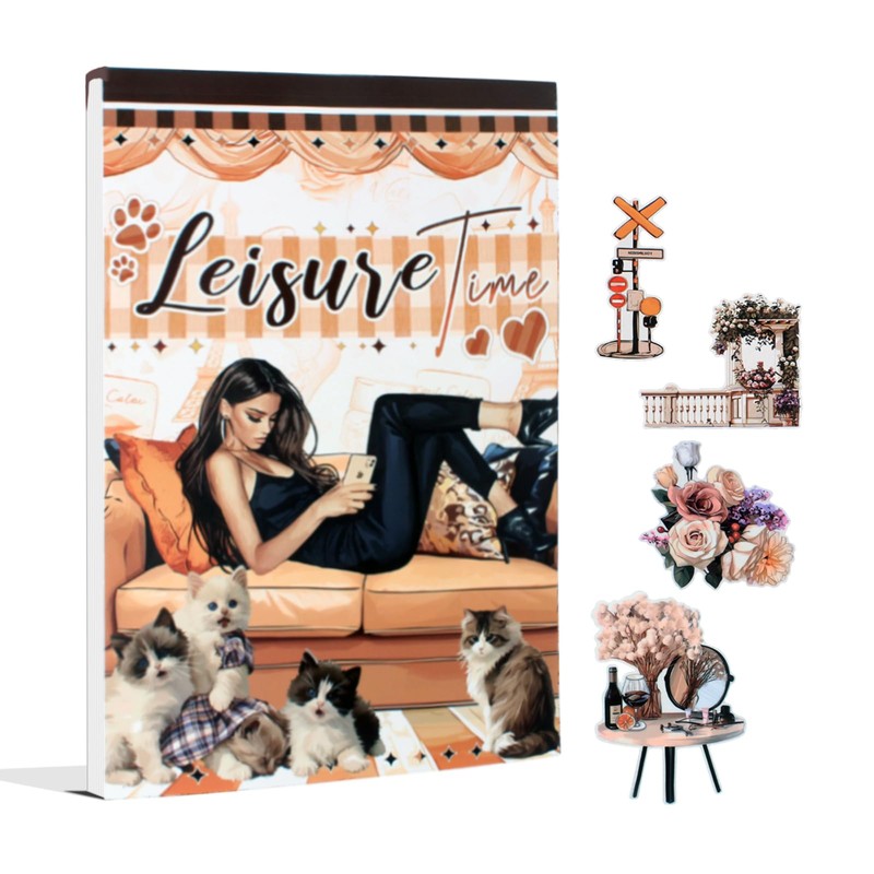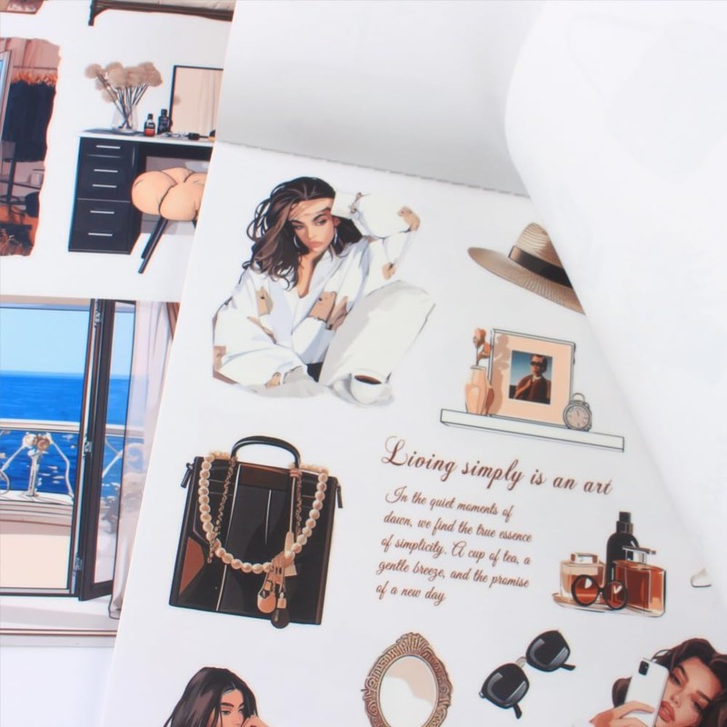- LEISURE TIME THEME: The Journal sticker book feature relaxing designs like cozy home settings, pets, travel destinations, sweets, and more. Journaling Sticker designs include furniture, sofas, bathtubs, cakes, windows, the Eiffel Tower, cats, dogs, flowers, gardens, letters, and days of the week.