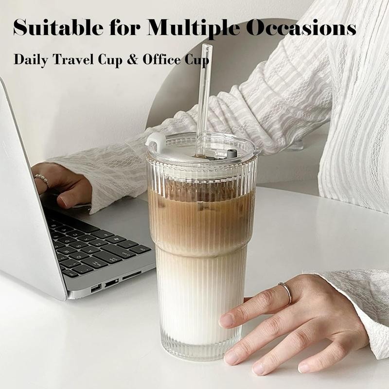- DWTS DANWEITESI 17oz Vertical Stripes Glass Coffee Cups with Lid & Straw Set of 4 Premium Drinking Glasses Thickened Glass for Iced Coffees Cocktails Juices Family Use & Parties Leak Proof Design Tumblers - Beverage