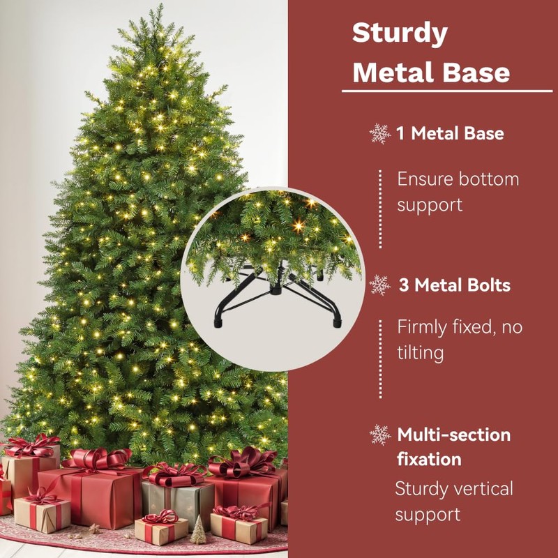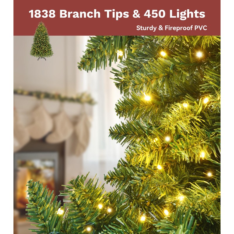DWVO DWVO Bell Shaped Prelit Christmas Tree 6ft, Atificial Christmas Tree with 450 LED Lights Includes Metal Stand, Full Green Xmaxs Trees with 1838 Branch Tips, Metal Hinged for Home Party Decoration