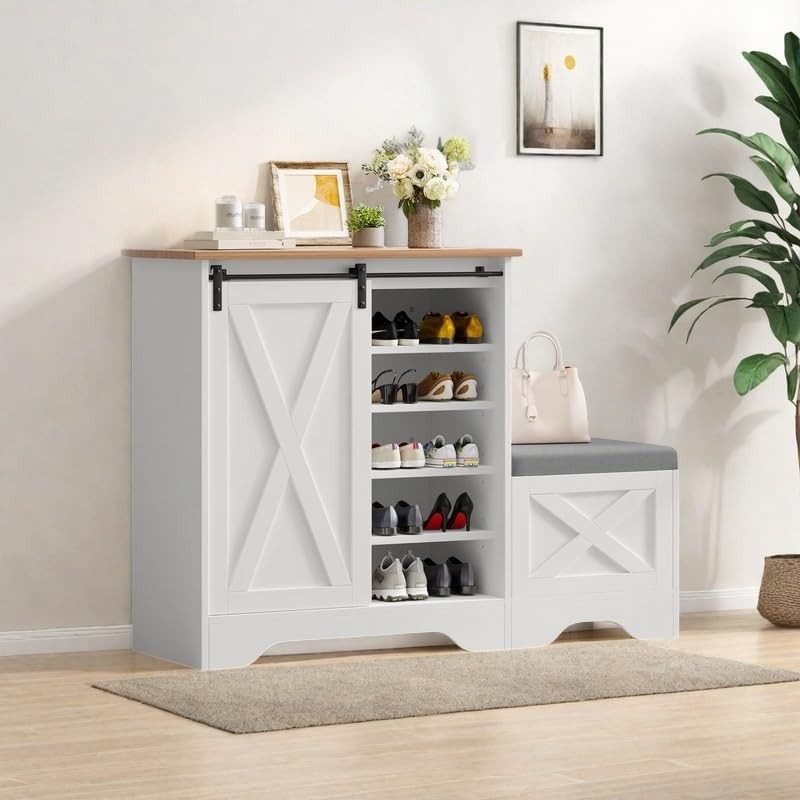 - Multifunctional Storage Bench: This shoe cabinet offers a practical dual-purpose design. The built-in bench provides a convenient seating area for changing shoes, while the hidden storage underneath the lid allows you to neatly tuck away your footwear or other items