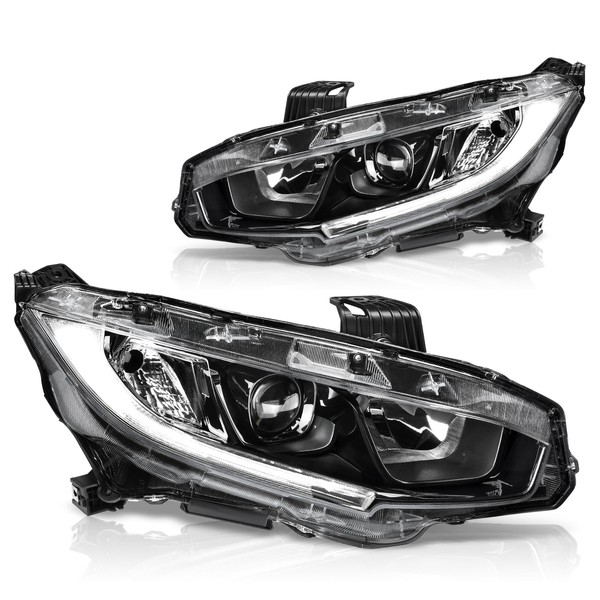 DWVO Projector Headlights Assembly with Daytime Running Lamps Compatible with 2016 2017 2018 2019 2020 2021 Civic Headlamp Replacement Pair Black Housing