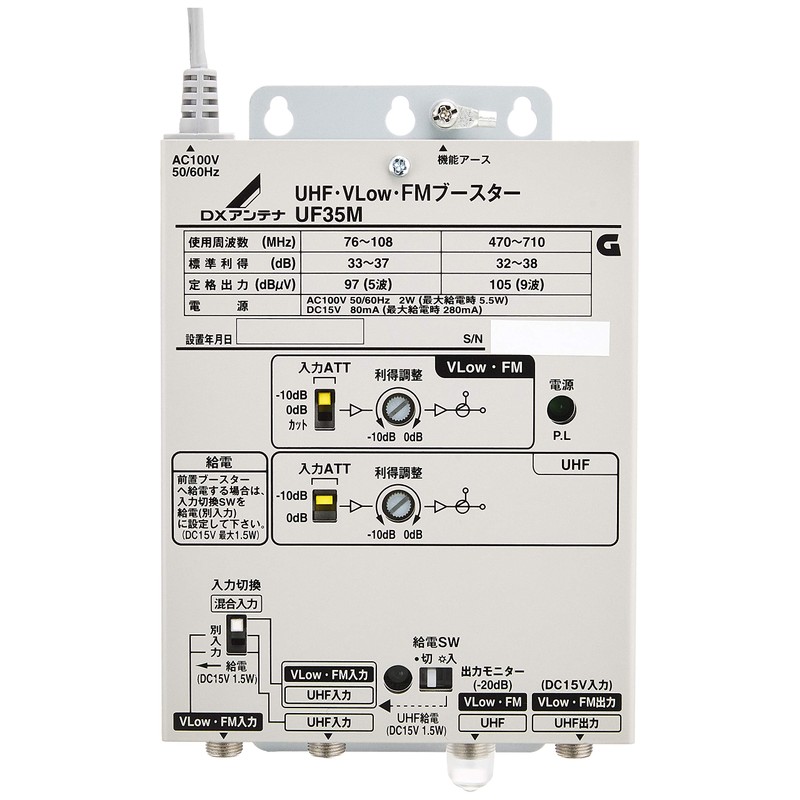 - UHF Gain 35dB Rated Output 105dBμV