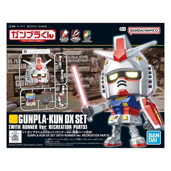 - 드디어 '건프라군'이 채색판으로 등장! 선택식으로 런너 상태로도 디스플레이가 가능! 익숙한 장비도 포함. 소재에는 LIMEX를 채용. LIMEX에 다색 성형이 실현된 것은 사상 처음!
