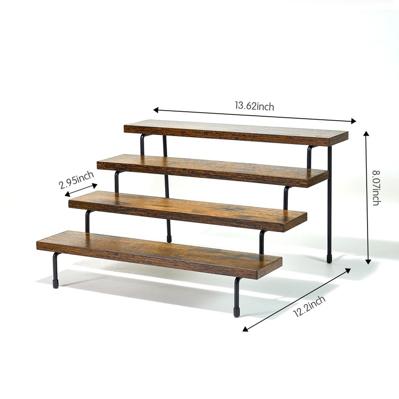 - Perfume Display Organizer: This display rack masterfully combines rustic wood grain with a sleek black matte finish, featuring a 4-tier stepped design that adds a touch of vintage elegance to your home decor. Whether placed in the living room, bedroom, or study, it seamlessly blends in and enhances the overall aesthetic appeal.