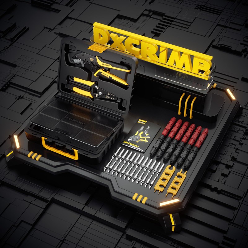 DxCRIMP Solar Crimper Tool Kit for 14-10 AWG Solar Panel Cable with 1PCS Solar Crimper and 1PCS Wire Strippers and 12Pairs Solar connectors and 1Pair Spanner Wrench, Solar Installation Assembly Tools