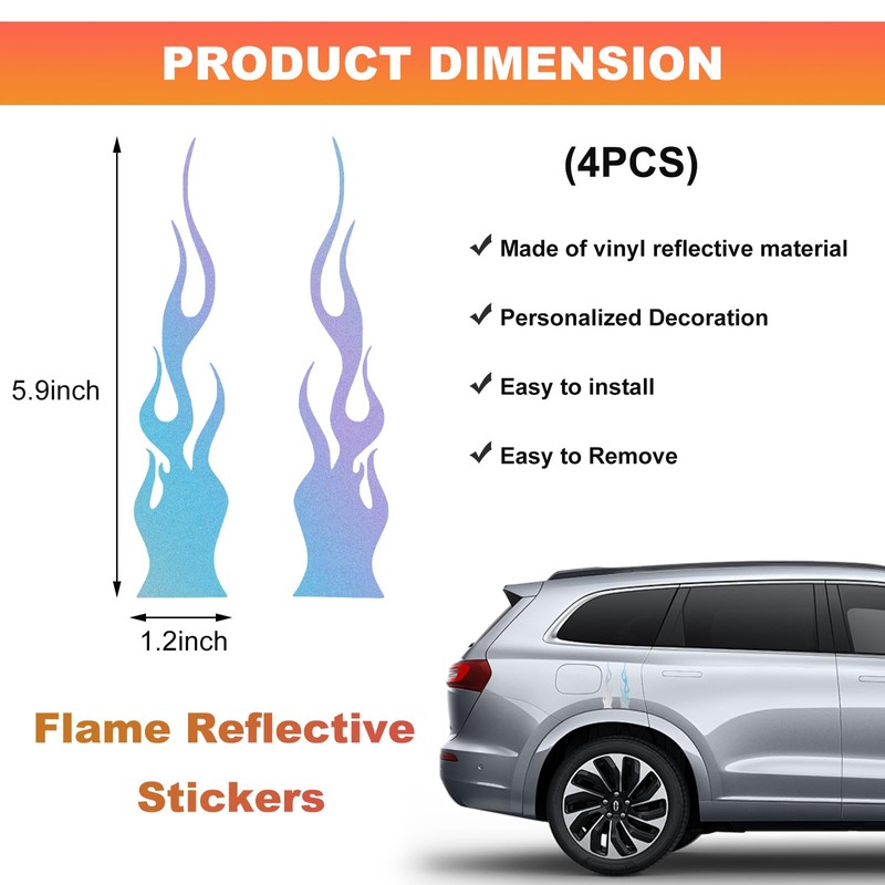 - 【Personalized Decoration】: These flame decals are ideal for decorating your car. This cool graphic design can enhance the car's look with a touch of your unique style. Reflective flame pattern makes your car more personalized and visible on the road.