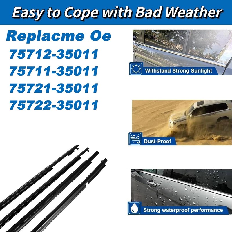 Dxuekeo Weather Stripping Window Molding Trim Seal Compatible with Toyota 4Runner 2010-2021 Weather Strip Sweep Felt Trim Seal Kit Replace# 75712-35011 75711-35011 75721-35011 75722-35011