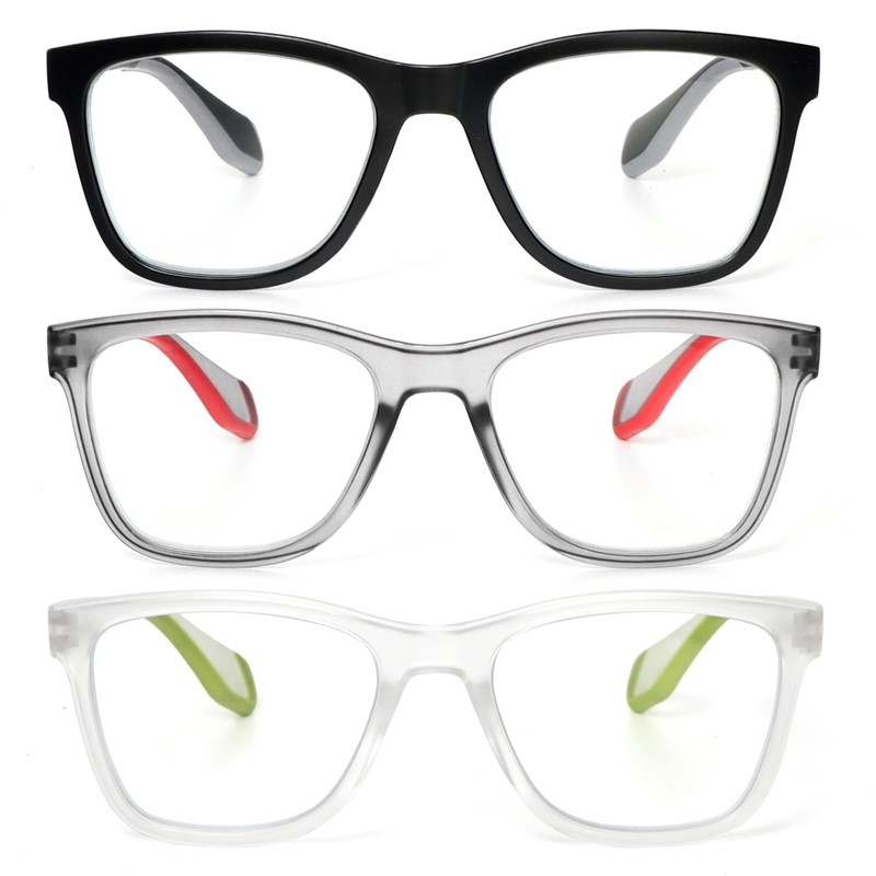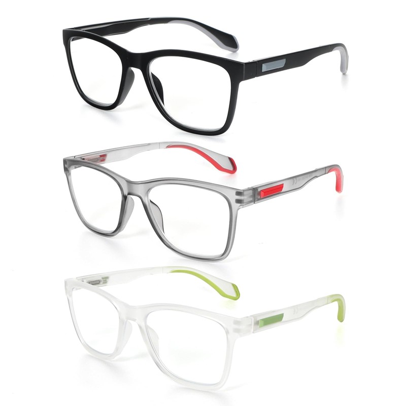 DXYXYO 3 Pack Sport Square Reading Glasses for Women Men, Lightweight Blue Light Blocking Readers with Spring Hinge, 2.5 Black+Grey+Green