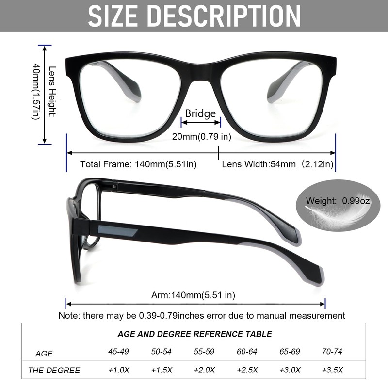 - No hole Arm: Unlike other sporty readers, these classic square reading glasses has no holes in the arme. It will not pull and hurt your hair