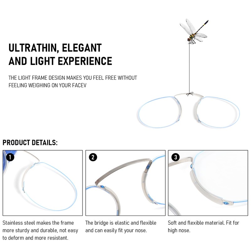 - Flexible Nose Bridge: The bridge has a high elesticity which can adjust to suitable for you. These clip on nose eyeglasses are more suitable for high nose.