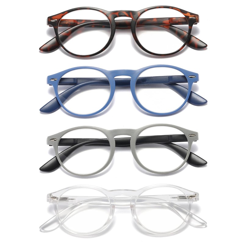 DXYXYO 4 Pack Reading Glasses for Women Small Face Blue Light Blocking Round Men Computer Readers with Spring Hinge, 2.25