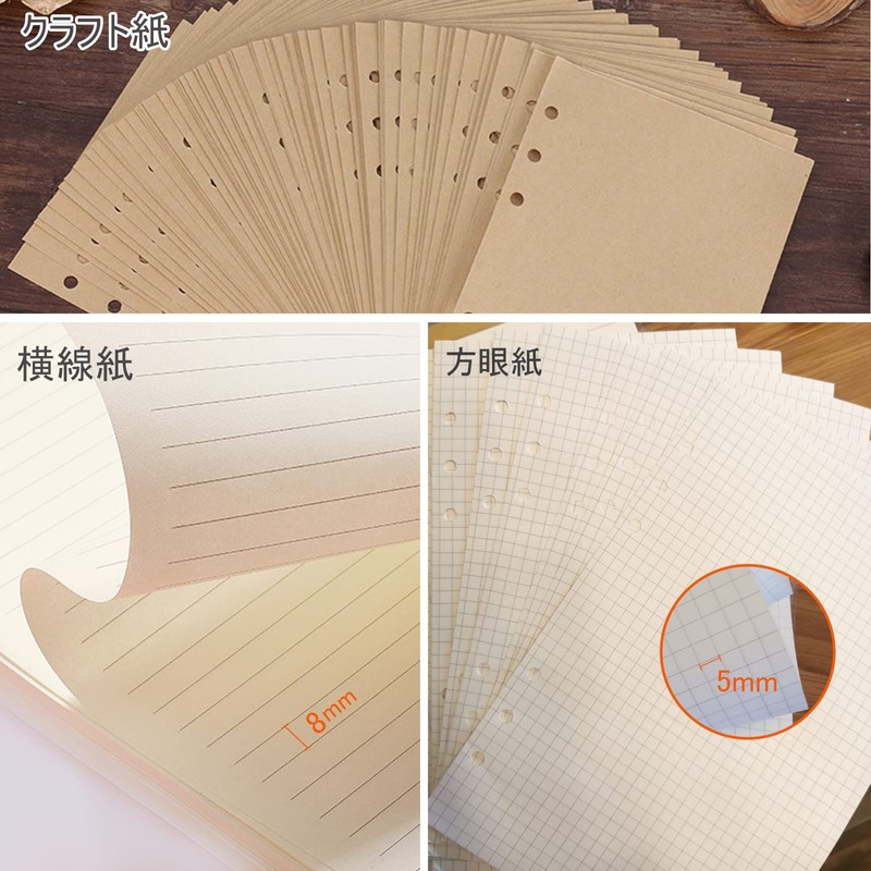 - [Value Personal Organizer Refill Set] Package Contents: 6-hole A6 system notebook binder x 1 + 6-hole A6 notebook refill - 1 square x 20 sheets + 6-hole A6 notebook refill - 1 blank x 20 sheets + 6-hole A6 notebook refill - 1 x Kraft paper + 1 x Zipper pocket + 1 x Card pocket. 1 x clear pocket. +Color index*5 + bookmark *1 + index date sheet *2 + sticky notes *1