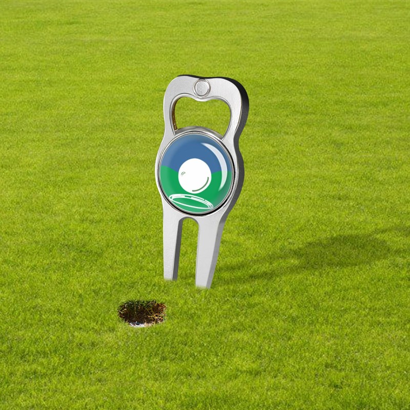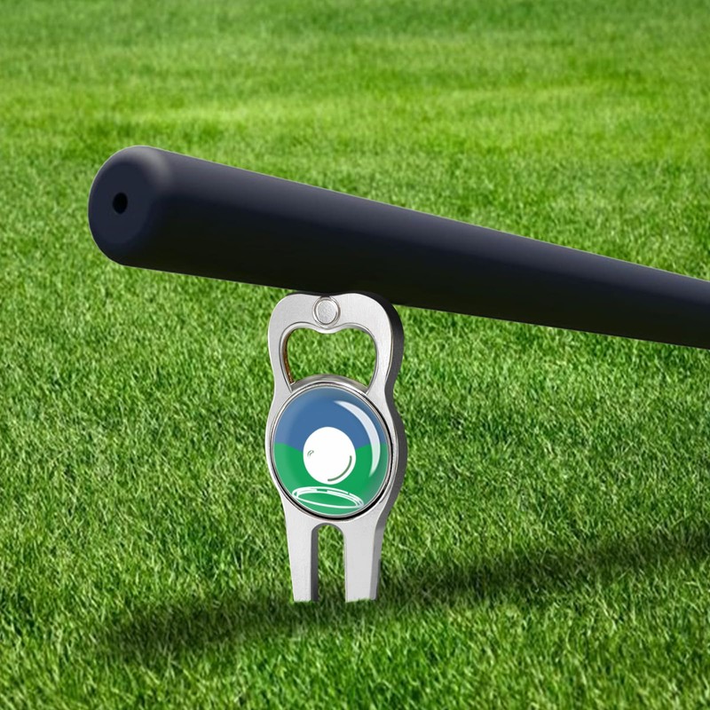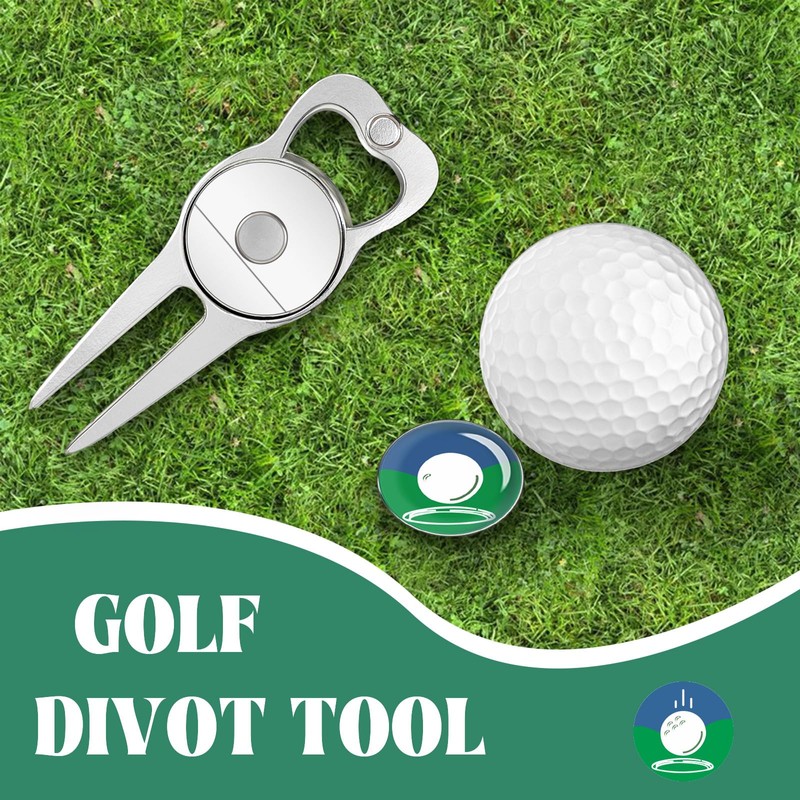 DYDESI 5-in-1 Golf Divot Tool with Funny Magnetic Ball Marker & Bottle Opener,Green Divit Fixer Golf Club Cleaner,Silver