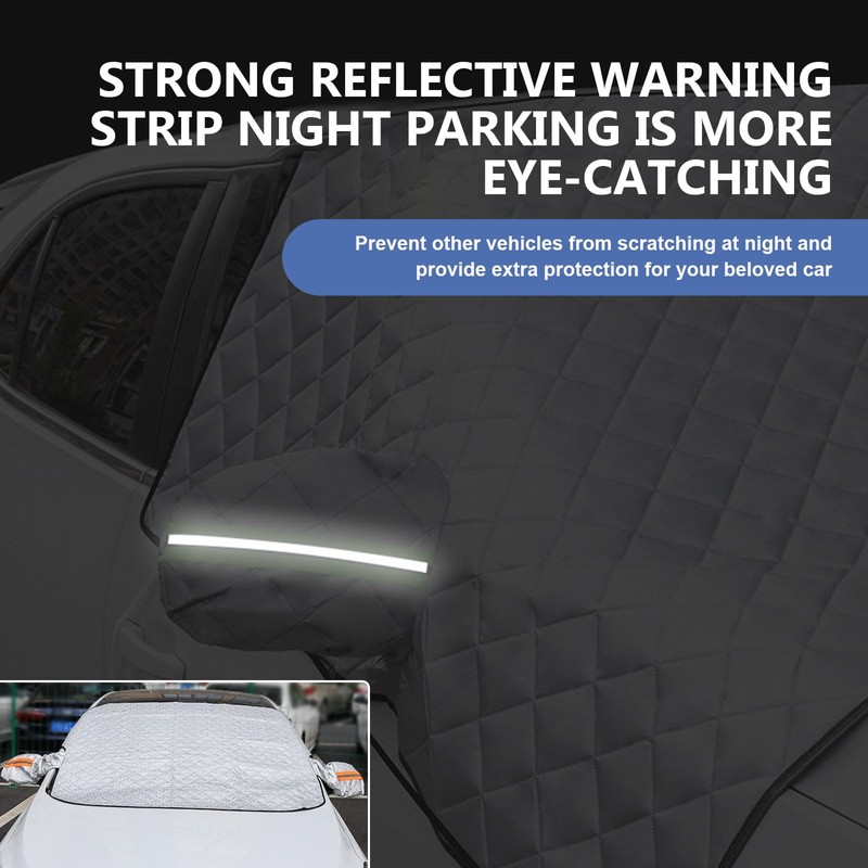 - Reflective Warning: This windshield cover rearview mirror has a strong reflective warning strip, high brightness warning, making night parking safer, avoiding scratches by pedestrians and vehicles, and improving driving safety.