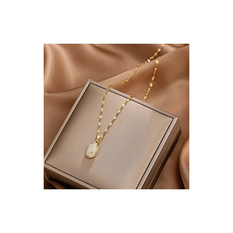 Tulip Opal Pendant Necklace Titanium Steel Necklace Gold Plated for Women