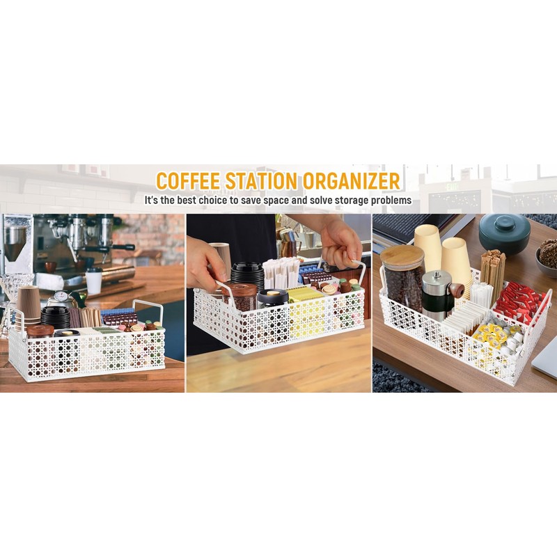 DYGZBLHT Coffee Bar Organizer Countertop, Metal Coffee Station Organizer Coffee Bar Accessories Organizer With Handles, Coffee Pods Holder Coffee and Tea Condiment Organizer Station Mesh White