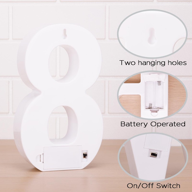 - 【Easy to Operate】 Our led llight up numbers are easy and convenient to use, with no wiring or outlet required. Simply need 2 AA batteries (not included in package). You can control on/off the switch behind the letter to turn on/off the number lights.